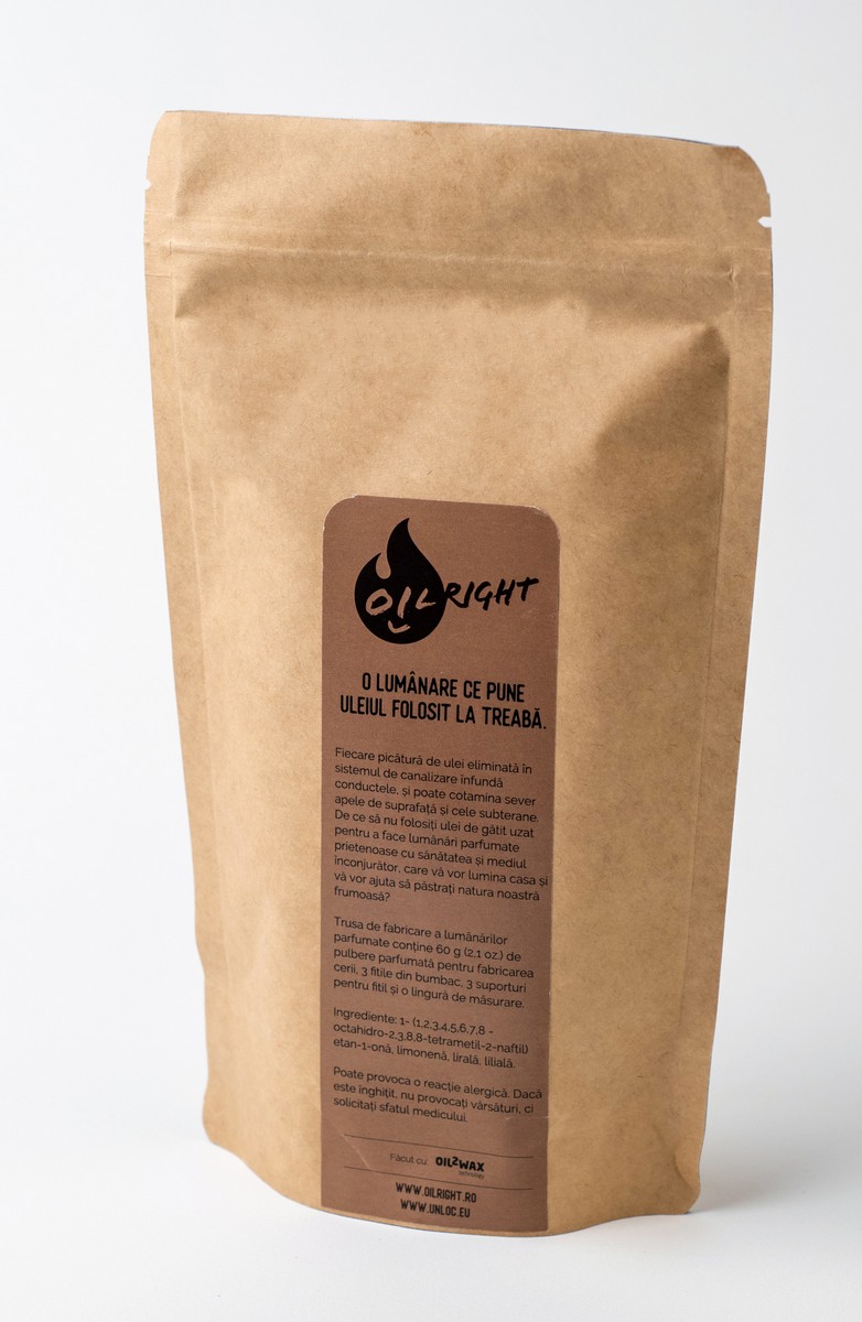 Conținutul este suficient pentru producerea a trei lumânări din propriul ulei uzat, acasă.